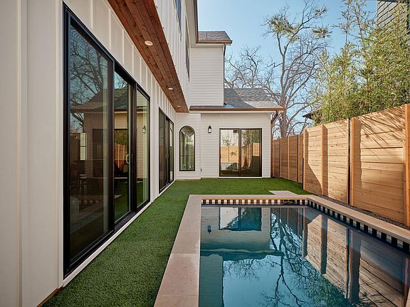 Tudor-inspired new construction by AVERY Building Co., designed by Veronica Avery with architecture by Kelley Design Group. This 2,173 sq.ft home offers 4 bedrooms, 3 bathrooms, private pool, and stunning details throughout. The exterior showcases curved windows, brick arches, and timeless craftsmanship that continues inside with archways, soaring ceilings, and abundant natural light. The open-concept floor plan connects living, dining, and kitchen, making it perfect for entertaining. The chef’s kitchen features custom cabinetry and designer-selected finishes, with every detail reflecting a dedication to quality. Spacious bedrooms and spa-like bathrooms provide serene retreats, while thoughtful upgrades add modern comfort. A large gated front yard and backyard create ample outdoor space. No HOA dues or short-term rental restrictions allowing this home to offer flexibility for both personal use and investment. A rare opportunity to own a Tudor-inspired residence in the heart of East Austin.