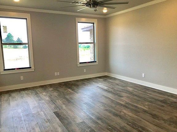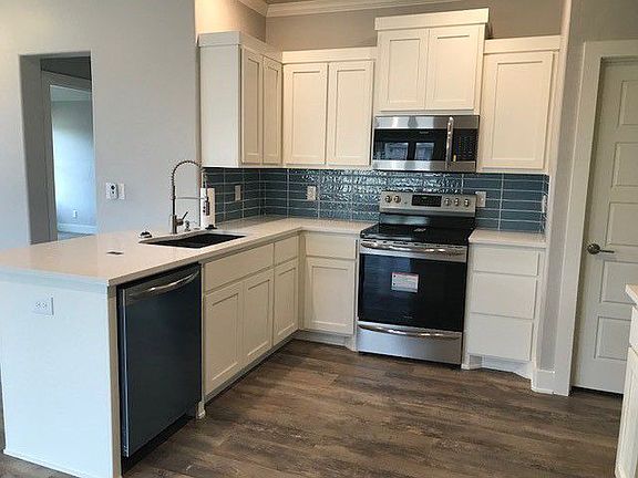 This house was just completed in March 2019. This house is split floor plan with 2 bedrooms and bathroom on one side, and master bedroom with bathroom on other side that includes 2 sinks, bathtub, and shower. Extra features include: Quartz countertops, Quartz kitchen sink, stainless steel appliances, weathered wood look floor. There is carpet in bedrooms, LED lighting, living room and kitchen and dining has all open concept. Windmill style ceiling fans, blinds to be installed. coming from garage there is built in coat rack with storage bins. Builders warranty, and much more.