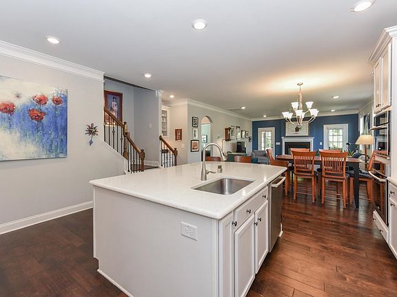 PRICE IMPROVEMENT! Low maintenance home, HOA takes care of a lot for you! Located at the end of a row of other homes giving you a greater sense of privacy than other homes in the community enjoy. Downstairs master suite w/trey ceiling, hardwoods, large WIC (carpet), & large tile shower w/seat. Tile floors in master bath. SS appliances in the kitchen - gas cooktop, subway tile backsplash, maple cabs, large kitchen island, single bowl sink, granite counters, & walk in pantry. Refrig, washer, & dryer convey. Hardwood oak stair treads lead to the upstairs BR's/bath w/built in bookcases in the hall. Need storage? Lots of unfinished storage upstairs - 2 different access points. Make sure you check it out! Fall is coming w/ooler temps, the 2-sided direct vent gas log fireplace can be used in the screened in porch or living room. Seller has enjoyed watching a variety of birds (especially bluebirds!) on the porch, which leads to back patio/fenced in yard. Downstairs laundry w/tile floor & sink is next to the 2 car garage. Long driveway for extra parking. See agent remarks for more!