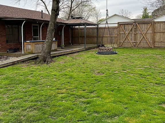 Backyard OASIS awaits new owners! Enjoy relaxing by the pool, hanging out under the gazebo reading, or just watching the kids play on their OWN playground equipment! There's also a covered bar area. The backyard is full of beautiful landscaping and a cool boardwalk sidewalk. Think of ALL the fun you and your family can have enjoying all that summer has to offer...grilling out, pool time, playing outside, all in your OWN OUTDOOR OASIS! Your home would definitely be the "COOL" house ! All your kids friends would enjoy hanging out! There's also two large buildings to use for a workshop, teen space, craft room, storage, or whatever you need! This 3 bedroom, 2 bath home has 1503 sq ft. The master bath has custom tiled shower. Both baths have updated vanity and lighting. The kitchen offers tons of storage, prep space, gas stove, and stainless appliances. Large laundry room is off the kitchen. Hurry to see this great home, backyard retreat with 2 additional lots! OPEN HOUSE Sunday May 1st from 2:00-4:00!