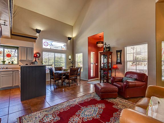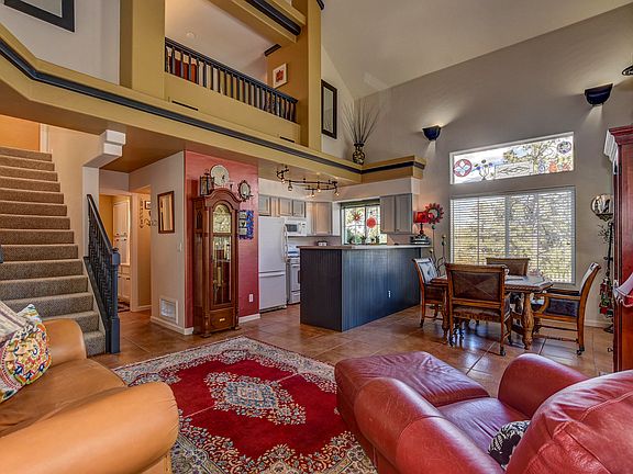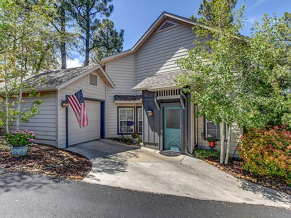 This lovely home is just one mile from Downtown Prescott. It boasts a large master bedroom with two closets and access to the gorgeous patio. A guest room, a full bathroom, laundry, the kitchen and living room are all on the main level. Upstairs is a wonderful family /tv room which could be a third bedroom. The home is owned by a decorator and painted to accent the unique architectural features of this beautiful home. There is a charming patio perfect for sipping coffee in the morning and having dinner in the evening. Situated in the Pines of Prescott, with a low maintenance yard, just minutes from the Courthouse square. This home has an over sized one car garage and includes a designated parking place. Come see this one, you won't be disappointed.