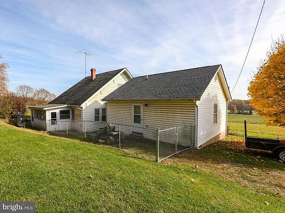 Gorgeous views from the front porch! 3 Bedroom (one bedroom with a wardrobe closet) and 2-bath farmhouse with a newer addition located on approximately 2.76 acres in Frederick County Va and ready for the next homeowner to add their personal touches. The newer addition has a large Primary Suite with a ceiling fan, 2 walk-in closets, and a full bath and has a new roof in 2022. There is also a cellar basement with access from the kitchen area. The original part of the house has a large living room with an oil stove for heating, a large dining room, and a kitchen with access to a covered sun porch. Upstairs are the other bedrooms and a full bath. Fenced for cattle with a run-in shed with water and electricity and also two other buildings. The location is convenient to Route 522 North and also Apple Pie Ridge Road. Home is being sold "as is" and ready for some TLC.