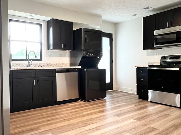 Completely renovated 2BR/1BA apartment with LVP flooring throughout and appliance package including washer/dryer. Updates include new HVAC, windows, all interior finishes. One year lease, no pets/no smoking. Tenant covers all utilities. Landlord provides lawn care and garbage. This unit is on the 2nd level. Layout may vary depending on unit. Photos are of previous units with same finishes. Conveniently located in town, close to EKU campus, I-75 and shopping. One year lease. No pets/no smoking. Tenant covers all utilities and landlord provides lawn care and garbage service.