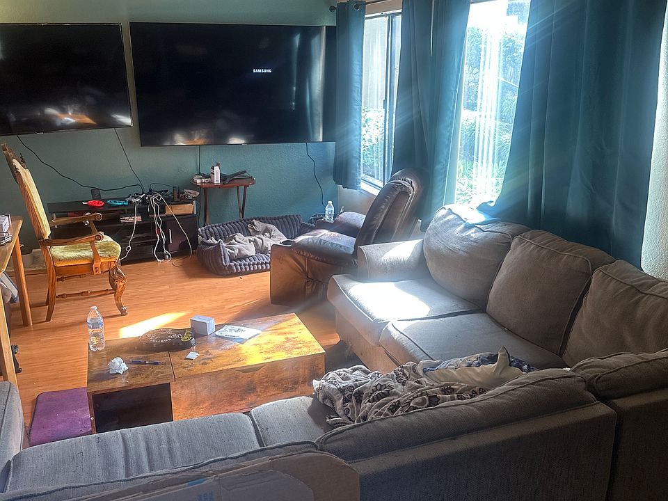 Spacious sized bedroom hardwood floor on the second floor share bathroom and half bathroom shared kitchen that was recently redone brand new dishwasher and refrigerator we have a washer and dryer on property two shared living rooms spaces we have a community swimming pool and hot tub opens 7 am closes 10 -No smoking cigarettes inside -Internet is 40 from you a month -We have cleaning ladies come every two months to clean common area and bathrooms 40 dollars from you every two weeks -trash bill comes every three months we will split the cost -water bill comes every two months we will split the cost -gas and electric bill comes every month we will split the cost -Running dishwasher n takin out trash and taking bins to curb we alternate weeks on these chores -parking passes are optional there is street parking if you don't want to pay to park in complex -1550$ rent is due on the 1st of every month the lease will be a month to month -no dogs -cats welcomed -clean up after yourself -be friendly