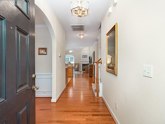 Recent updates: 2024 NEW ROOF & Sept 2024 NEW AC. Step into this immaculately maintained end-unit townhome that blends comfort & style, offering the finest in low-maintenance living. This 1 ½ story home features a spacious 1st-flr owner's suite & an abundance of custom features. The charming stone/vinyl exterior with a rocking chair porch sets a welcoming tone. Inside, enjoy neutral tones, gleaming hardwoods & an open floor plan. The dining room impresses with a crystal chandelier & tray ceiling, leading to a large kitchen with Corian counters, tile backsplash & maple cabinetry. The great room boasts a vaulted ceiling, marble gas fireplace & flows into a bright sunroom. Owners retreat with tray ceiling, ensuite bath complete with a dual vanity, soaking tub, separate shower & walk-in closet. Upstairs offers 2 oversized BRs, a full bath & ample storage include walk-out attic. A double garage provides extra storage & cabinetry. Low-maintenance living with HOA covering lawn, roof, exterior care, plus close access to the community pool & greenway. Conveniently Located near RTP & the airport.