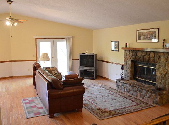 Well maintained, attractive, nicely landscaped 2/3 home in Country View Estates. Hard wood in living room, kitchen and dining room, lots of windows, vaulted ceiling, stone wood burning fireplace, stainless steel appliances (electric range/oven is brand new)and breakfast bar. 8' x 15' deck overlooking the garden off the master bedroom. Large 32' x 8' foot deck wraps around the front and one side of home. Large 2 car garage into basement. Full finished basement also has a rec-room/den and potential 3rd bedroom with closet and a full bath. House is wired for a generator. Large fenced in back yard. This is a must see!!