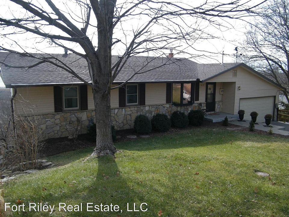 RARE RENTAL FIND! - Breath taking views from one of the best homes on Milford Lake. This spacious home offers a welcoming open floor plan with 5 bedrooms & 3 baths. The Great room has a large stone fireplace & offers the perfect place to relax with family after a day on the lake or hang out on the deck. The large country kitchen & dining room are perfect for any gathering. Enjoy your private Master Bedroom, full bath & entry to a private screened in porch plus a sitting area with a 2nd beautiful stone fireplace. There is a rec room on the lowest level with access to the back yard. Under the garage is a workshop. Some other amenities include construction using 2 X 6's, deck awning w/interior remote, newer kitchen countertops, reverse osmosis system, professionally landscaped, sprinkler/irrigation system, a few blk to boat ramp. 2 lots w/a detached 2 car garage perfect for your boat, jet skis or motorcycle. (RLNE3815387)