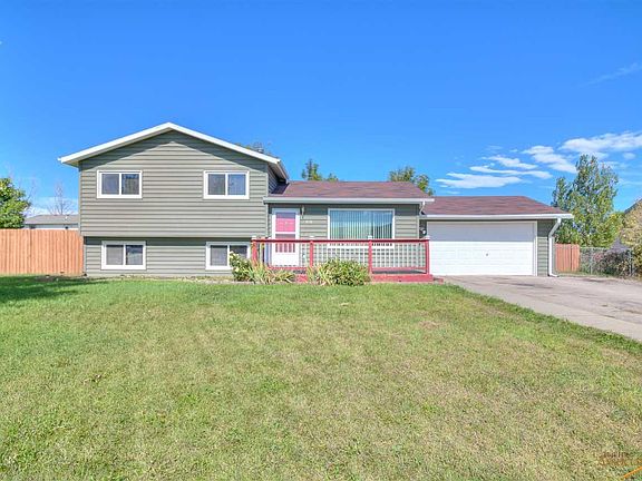 Check out this 3 bedroom, 1.5 bathroom home located in the Thunderbird Subdivision in Box Elder. The main floor features laminate flooring through out the kitchen, living room and dining room areas. The sliding glass door off the dining room allows you to relax on the back porch in the large backyard complete with a privacy fence. The upper level of this home houses the 3 bedrooms and full bathroom. The lower level consists of a large family room, laundry room and half bath. Washer, dryer and stand up freezer included. Conveniently located close to EAFB, Rapid City and the interstate.