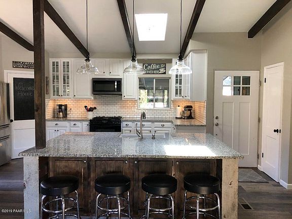Beautiful 5 bedroom, 2 bath home nestled in a quiet neighborhood within minutes of down town Prescott. Located less than a mile from Taylor Hicks elementary. Beautiful .35 acre lot with lots of mature trees. Gorgeous newly remodeled kitchen boasting granite countertops and open floor plan. Massive kitchen island with farm sink, lots of storage, and comfortably seats 4. Entire interior is freshly painted. New vinyl plank flooring and carpet throughout. Bathrooms have new vanities and fixtures. Property includes a 20x25 workshop, a separate 10x10 shed and 2 car carport. Home also includes a large elevated Arizona room off the main floor, great for sitting and enjoying the Arizona sunshine.