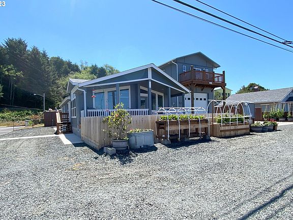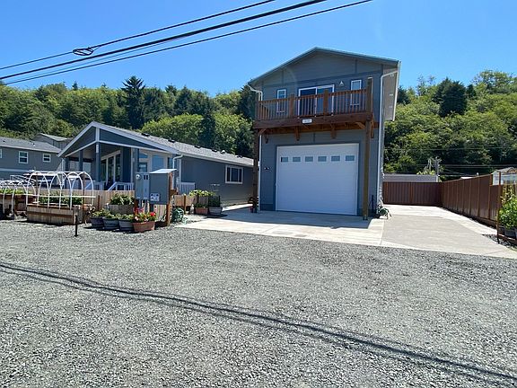 Winchester Bay dream! 2023 Palm Harbor manufactured home with upgraded features and huge 20x40 Shop with 12 ft. doors and full bath. 800 sq ft 2 bedroom, 1 bath apartment above on top floor with deck to take in the harbor views. Home and apartment sold completely furnished! 80'x15' parking on each side of property, both with electric and water hook ups. 400 Amp electrical service with two 30 amp and one 50 amp hook up. Just one block from the harbor. Close to boat launch, docks, restaurants and all that makes Winchester Bay a magical place to live and visit! Oregon Dunes and Umpqua River are just minutes away. Live in one and rent out the other or rent out both and use shop and RV parking for yourself! So many options with this rare, one of a kind property. Raised garden beds with drip system producing berries and veggies. Outdoor fish cleaning station with hot and cold water! Price includes all furniture and appliances.