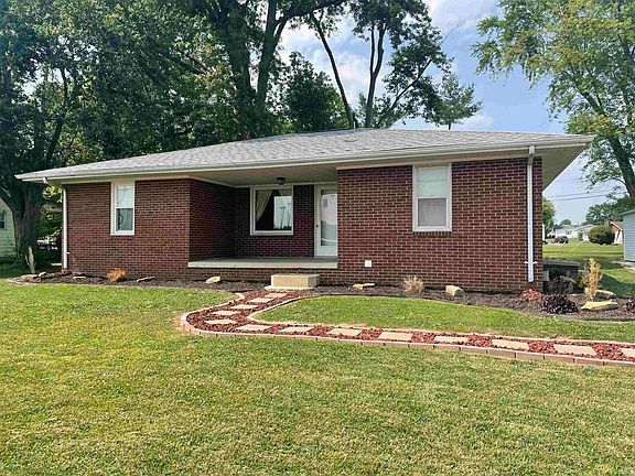 Charming 3 bedroom, 2 bath brick home. Spacious living room with hardwood floors, and kitchen with newer appliances. Many updates including newer central air unit, water heater, furnace, water softener, and new carpet. Beautifully remodeled basement includes family room with bar, upgraded full bath/laundry room with walk-in tile shower, a walk-in closet and a large storage room. Detached garage, and a covered front porch, on .30 acre lot conveniently located across from the Loogootee School.