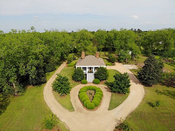 ONE OF A KIND HOME FEATURED IN SOUTHERN LIVING MAGAZINE! This raised cottage, Greek revival style home is located on +/- 6.74 Acres on one of Albany's most beloved streets, Byron Plantation Rd. Originally built in 1841 in Cuthbert, GA and moved on site in 1990. The owners were able to save and use most all the original materials including the 6 large octagon shaped columns, diamond shaped transom and entablature over each side of the front door and so much more! As you enter the long drive lined with beautiful Pecan trees, the approach to the house is breath taking. The front stairs lead you to the front door, where the view is one of a kind. Entering the welcoming foyer you will note the gorgeous heart pine floors and wanes coating, 12ft ceilings, hand blown glass windows, where each pane is like a work of art, with the light dancing through the windows. The library is to the right and has heart pine boards from the original dwelling and a handsome heart pine mantle with a gas fireplace (one of the 4 fireplaces in the home). The dining room is to the left with 4 large 8ft window, wood burning fireplace, Italian teardrop chandelier and a working dumbwaiter for transporting food from the kitchen below. There are 2 bedrooms on the upper level, including the Primary Bedroom and one guest suite. The Primary bedroom features 3 closets (one walk-in) and on suite bath w/ his & her vanities. The upper guest suite is very spacious as well w/ 2 closets and bath with a beautiful claw foot tub. The rear stair case is tucked away allowing for the main hall to double as an additional living space. The lower level of the home was built on site with reclaimed materials to complement the historic details of the upper level and is similar to many raised low country style or Louisiana Cottage style homes with double brick walls and a brick floor. Here you will find a large open family room, breakfast area, kitchen, 2 full baths, laundry room and 2 guest bedrooms. The kitchen is very spacious with plenty of room for a center island, pantry and features stunning pecky cypress cabinetry. Overhead you will note the 10ft ceilings with rough cut heart pine and hand-hewn beams. Additional interior features include: heart pine 4 panel doors & granite counter tops in the baths. Outside is a true oasis with a newly added covered back patio with a large wood burning outdoor fireplace. There is large yard, a well/ storage house and amazing 24 x20 wood shop and additional storage!