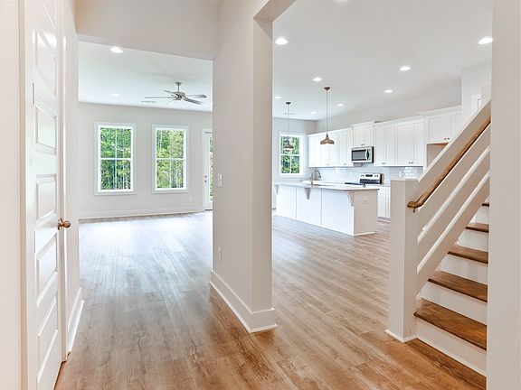 *MOVE IN READY* Positioned less than 2 miles from Auburn University's Jordan-Hare, Owens Crossing is built by Holland Homes LLC. The interior unit, 2 car garage townhome features 4 bedrooms, 3.5 baths and features an open floor plan. Showcasing 10 ft ceilings and 6" baseboards throughout, the modern farmhouse design is both charming and functional. Durable luxury vinyl plank can be found in all living spaces and carpet in the bedrooms. The kitchen displays custom cabinetry, granite countertops and stainless steel Whirlpool appliances. The spacious owner's retreat features a double vanity, tiled shower, and walk-in closet. Three additional bedrooms are located on the upper level. Bedrooms 2 and 4 have a shared bath while bedroom 3 has its own private en suite.