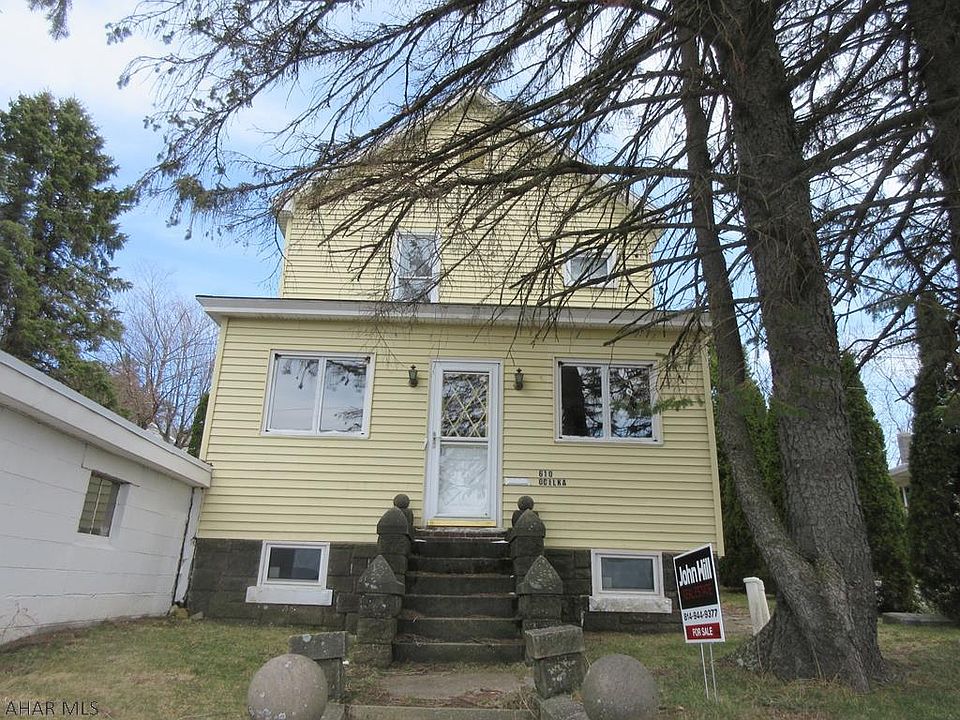 Gallitzin 2 story vinyl home with large living room, formal dining and spacious kitchen. Enclosed front and back porches, 1 car attached concrete block garage and storage shed. Buyer responsible for required municipal sewer testing and escrow/repairs.