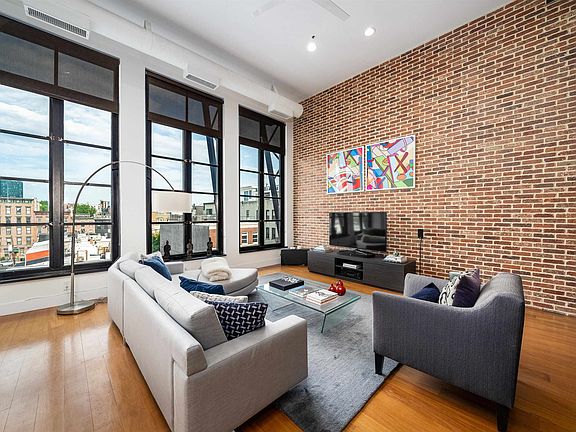 Video: https://vimeo.com/953986334?share=copy Penthouse 4C at The Cast Iron – One of Hoboken’s most exceptional and unique residences. From the moment the keyed elevator doors open, you know you have entered a truly special place. This 1,925s/f 3 bedroom / 2 bathroom loft located in the heart of Hoboken offers the most stunning panoramic views of the Manhattan skyline through its east facing floor to ceiling windows. The living space boasts a ceiling height over 15’, exposed industrial venting, floor-to-ceiling brick feature wall and wide plank hard wood flooring. The fully equipped chef’s kitchen has been thoughtfully designed with custom cabinetry, black soapstone countertops, stainless steel backsplash, top-of-the-line Viking and SubZero appliances and an abundance of storage. The dining room is an entertainer’s dream, perfect for any dinner party. The primary bedroom offers stunning panoramic city views through floor to ceiling windows, a massive and fully customized 9’ x 15’ walk-in closet and renovated spa-like en-suite bathroom with deep soaking tub, frameless glass shower and dual vanity. The upper level of this home features two lofted bedrooms offering dramatic and expansive views of the entire loft. Stepping back into the keyed elevator, you make your way up to your very own private 400+s/f roof deck with the most stunning 360 views of the Manhattan Skyline and western sunsets. Additional highlights include central A/C, in-unit laundry, in-unit storage, recessed lighting throughout and an SUV-size garage parking space. Centrally located on 6th and Clinton, you will find easy access to shopping, dining, grocery stores, the NJ Transit bus line to Port Authority at your doorstep, the PATH and the Hudson River waterfront promenade.