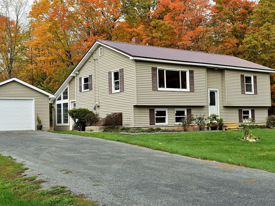 Absolutely adorable raised ranch already to move in! This sweet property has been all renovated with an updated kitchen w/ stainless appliances, bath w/a tiled walk-in shower, tile and hardwood floors, unique built-ins, a new sunroom waiting to be finished and can be easily heated from the furnace if you choose to in the future. The dry basement offers even more possibilities for future expansion. This property sits back from the road nicely sheltered. There is also a beautiful yard with a patio and fire pit for outdoor enjoyment and a detached one bay garage and shed for lawn equipment and toys. Don't wait on this one! It's a GREAT Buy!