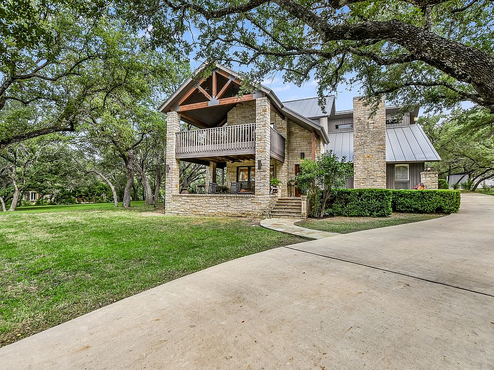 Enjoy the lake lifestyle of Lake Travis in this thoughtfully designed home nestled in the privately gated community of Windermere Oaks in Spicewood, Texas. This home boasts an open concept design to entertain your guest with two bedrooms and two baths in the main house with a separate 1 bedroom guest apartment and living area that can be used for additional guests, office, or entertaining with a half bath attached to the two-car garage. As you approach the home, you will be greeted with many deer on the expansive double, tree-filled lot, landscaped, which sets the tranquil tone of comfort and elegance that awaits you. The main level features rich parquet wood floors throughout the living, kitchen, and bedroom. The exquisite island kitchen is perfect for meal prep or casual dining and features stainless appliances, high-end granite countertops, which provide a sleek updated look for this lake house. The primary bedroom is upstairs in order to take advantage of the large porch with incredible hill country views. Come take a look at this unique opportunity to own a slice of heaven.