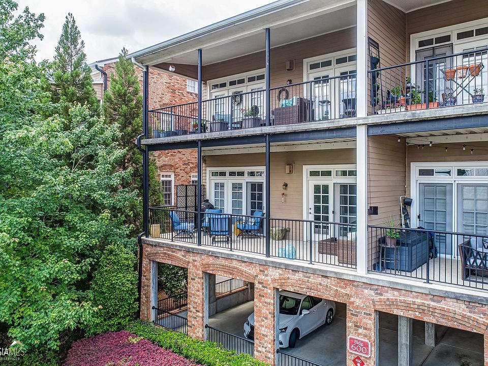 Have it all with this 2BR/2BA condo located in Mill Street Park Condominium! The interior finishes and the exterior views will WOW you! The kitchen offers 42 inch cabinets, range with microwave oven above, built in wine rack, and a large granite breakfast counter. The dining and living areas combine for the perfect open concept floor plan. Throughout the home you will find upgraded REAL hardwood floors, complimented with high ceilings, two sets of triple patio doors with transom windows above, allowing for great natural light to the master bedroom and main living area! Dual sided fireplace between great room and master bedroom. Master features a tray ceiling, fireplace, a recently updated ensuite bathroom with new vanity and floor tile and large shower with bench seat. The semi-custom master bedroom closet should seal the deal on this home, prepare to be wowed again! The second bedroom works great as a flex space too. Huge rear covered porch is another living area overlooking tree top views and sounds of Big Creek below. Easy low maintenance living, with walkability to Roswell's restaurants, coffee shops, landmarks, trails, festivals and events at the historic Roswell Square, Chattahoochee River area and Canton Street, less than a mile away.