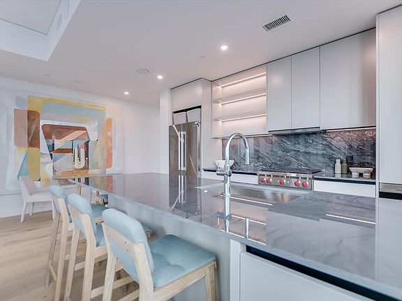 Bosch dishwasherFloor-to-ceiling windowsDark quartzite countertopsSpacious walk-in showerLarge center islandItalkraft cabinetry