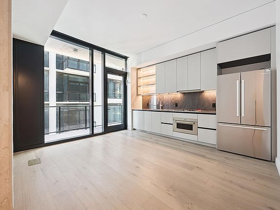 Expansive floor-to-ceiling windowsIn-unit washer and dryerSleek full-height quartz countertopsAmbient cove lightingWolf range and cooktopSpa-inspired bathroomWalk-in shower