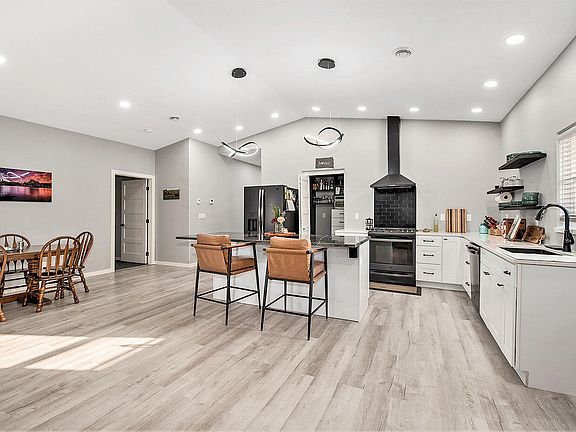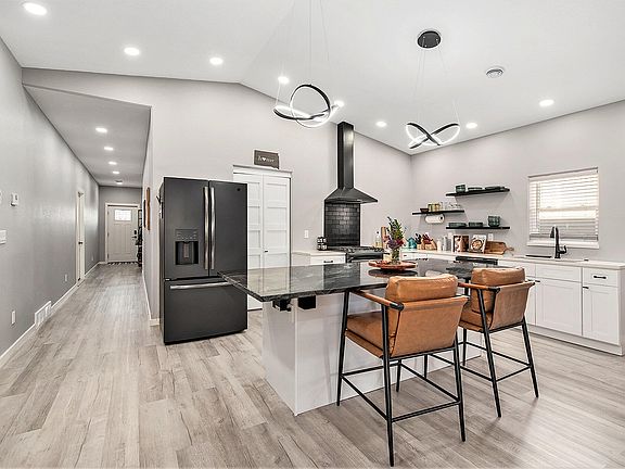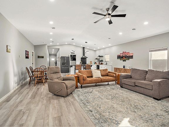 Welcome to this inviting zero-entry ranch-style home, which offers an expansive 2,074 square feet of living space, including three bedrooms and three bathrooms, along with a pleasant three-season room. A notable feature of the property is the spacious three-stall garage, equipped with cabinetry, a half-bath, and ample workspace, providing easy access to the large fenced-in backyard, which includes an additional cement pad with RV hookups. The primary bedroom is a highlight, featuring a generously sized walk-in closet/laundry room, elegant granite countertops, and a beautifully tiled walk-in shower. The home's main living area is designed for comfort, featuring a stone fireplace that creates a warm ambiance for relaxing evenings. Great central location!!