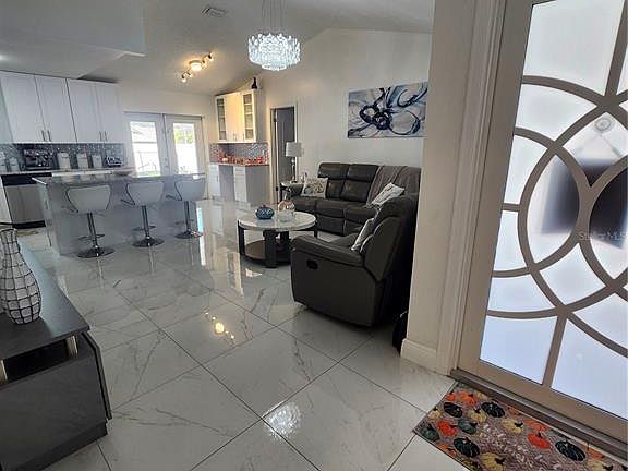 What a dream to find a small home with a luxurious finish level and a pool that's dressed to impress. Homeowners spared no expense in renovating this well built 1970s ranch home. It is brand new inside and out with over 100k in updates. This home features Ring doorbell and keyless entry with state of the art camera surveillance system, Smart thermostat, Rinnai tankless water heater and more. New 24' porcelain tile throughout. You can enjoy an open plan with Shaker style kitchen cabinets, granite countertops, top of the line Samsung appliances with a Smart gas oven and separate bar area with wine fridge. Master and second bedrooms are split, each with a walk-in closet and bathroom. Both bathrooms have been totally redone. Home has all new impact resistant windows and doors throughout. New french doors off the kitchen lead to an outdoor Oasis with plenty of room to entertain with large screen TV in place. Backyard has new Aluminum fencing all around, patio and pool have new sealed pavers throughout, Salt water pool has lights and jetted area to relax. The outdoor kitchen has small fridge, ice machine for cold outdoor drinks, 2 burner stovetop, sink. Dont forget about your outdoor shower with both hot and cold running water also. Home has newer roof, Rheem A/C, new ductwork, new plumbing, breaker box pre-wired for whole home generator, propane gas system recently filled pre-paid and transferrable, and water filtration system. Come see your new home! Sellers have done all the hard work so you dont have to.