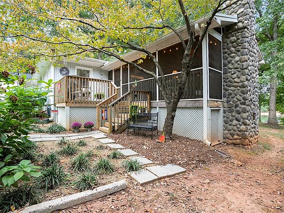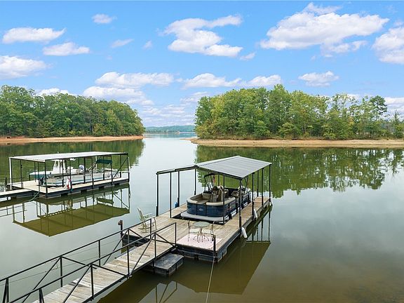 This is the Lake Hartwell waterfront getaway you've been waiting for in a sought after location only 5 miles from Clemson University! The current owners have done all the hard work here, including removing popcorn ceilings, rewiring the entire house, and installing all new water lines both from the street and under the house. The metal roof is only 7-8 years old, and the HVAC was replaced this year! The home has hardwood floors throughout, newer kitchen cabinets and quartz countertops, a wood burning fireplace in the living area, and a walk-in laundry room. The best views can be enjoyed from the 18x18 screened porch, which is useable even during the colder months thanks to the stone fireplace. The slope to the water is very gentle, and a 16x34 dock with a 60 ft gangwalk is already in place. In front of the home, there's a detached 2 car carport, as well as a storage building/workshop that has power. The home is being sold furnished.
