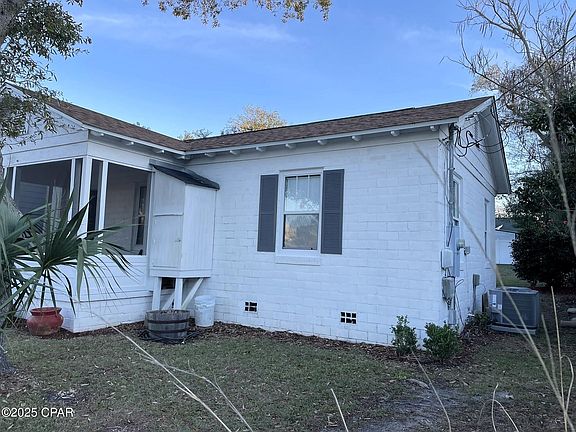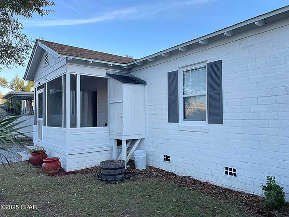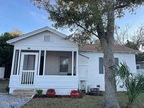 Cove Cottage made of Cement Bricks/Blocks and located right behind the our PC Fire Department #1 ! Location Location Location This is an ideal setting for many opportunities. Simply inviting, this tasteful renovation was well planned for function and comfort. The private backyard has a covered deck that serves as an extension of the kitchen offering a spot for grillin' and chillin'. The dining and living areas flowing into each other as an open space. The hall holds the stack washer/dryer unit and the HVAC with space for additional supplies and household equipment. 1 LARGE bedroom offers adequate space for a dressing and sitting area. The walk-in closet provides both hanging areas plus shelves for folded storage, linen and whatnot. A lawn building for needed tools, equipment and, of course, beach supplies! Old Florida Charm is preserved in our popular Cove neighborhood. Walk downtown or enjoy our golf cart friendly community. New roof 2025, New HVAC 2024, New windows, Electrical updated, Hardwood floors and so much more in this tastefully renovated Cove Cottage.