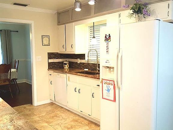 Don't miss this beautiful 3/2 bath home in an established neighborhood! Relax by the saltwater pool that sits adjacent to a koi pond! Stately columns separate a spacious living room and den. Other features include split brick, tile and new carpet, recessed lighting, wood burning fireplace, French doors, jacuzzi tub with separate shower, built in generator, granite counter tops, storage building with power, double carport, and outdoor kitchen bar for entertaining. Situated on a tree-shaded corner lot with approximately 1800 sf, this one won't last long!