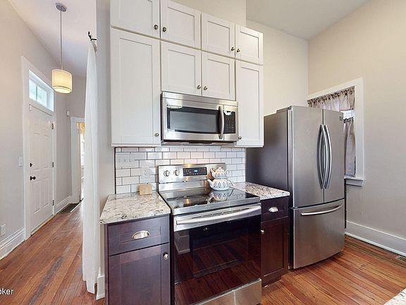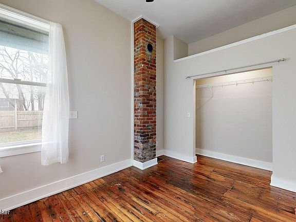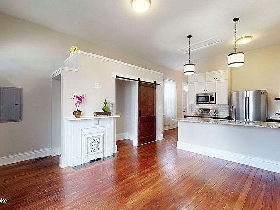Step into your elegantly updated shotgun home nestled in the thriving Shelby Park neighborhood. Revel in the beauty of original flooring and soaring ceilings, creating an inviting ambiance throughout. The seamless integration of the living room and kitchen provides generous space for relaxation or entertaining guests. Uncover a unique barn door-accessed extension in the living area, perfect for a cozy personal office nook or additional storage. The master bedroom showcases a striking original brick chimney, characterizing the space alongside a spacious, well-lit closet. A supplementary bedroom caters to family, guests, or personal interests. Indulge in the luxurious bathroom, featuring two vessel bowl sinks and ample storage space. Outside, a complete privacy fence surrounds the expansive backyard, featuring a convenient gate for off-street parking at the rear of the lot. Within mere steps from your front door, you'll find yourself surrounded by the vibrant pulse of Shelby Park, with popular destinations such as Toasty's Tavern, Canary Club, Breeze Wine Shop and Coffee Bar, and Trouble Bar all conveniently close by. Immerse yourself in the charm and practicality of this enchanting property.
