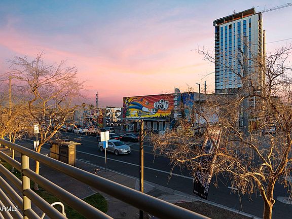 Upscale residential condo with commercial storefront on Roosevelt Row in Downtown Phoenix. Original owner condo has been thoroughly upgraded with Italian porcelain tile throughout the commercial space at ground level and Laura Ashley eucalyptus wood floors in the large upstairs loft. Enjoy the city views while cooking with Frigidaire Gallery, Jenn-Air and Vissani appliances. Both baths feature Latoscana Water Harmony Hardware, floating vanities and undermount lighting. Upgraded HVAC, with over 7 tons of air serving 3 zones. Prime commercial space with Roosevelt Row frontage can be owner occupied or rented to 3rd party. Unit includes a private, 2 car, tandem garage, with freshly sealed concrete floor. Upstairs AND downstairs laundry.