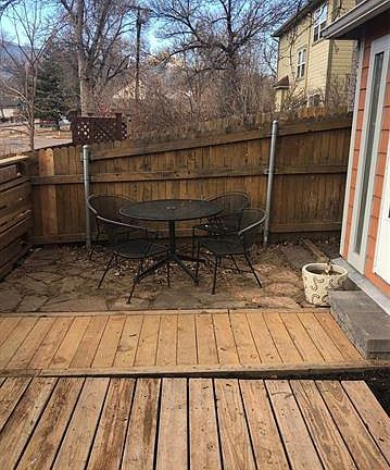 Super cute little house in the Downtown area of Colorado Springs. Fenced yard, wood deck surrounds the home. Unique 2 bedroom home. Large living area opens to kitchen with granite counter and stainless steel appliances. Small bedroom and bath on the main level, master bedroom is entire upper 1/2 story of home. Large shed in the back yard. Hardwood floors, newer vinyl windows and newer exterior wood siding. Low maintenance home, walking distance to Shooks Run park, basketball and tennis courts.