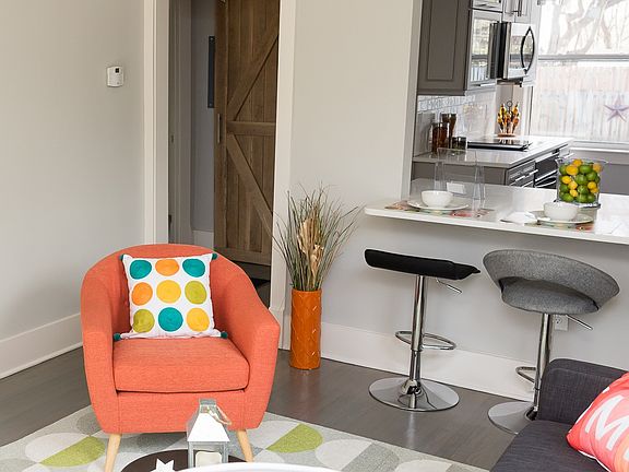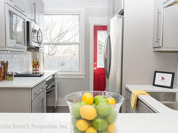 Adorable Flat in walking distance to 5 Points in Raleigh! Charming front porch with trellis. Bright and open family room with can lighting and hardwoods as well as exposed brick column. High end cabinets and quartz counter tops with breakfast bar. New appliances include cook top, oven and microwave. Tile Shower in bathroom and tile floor with barn door for old world charm. Bedrooms with hardwoods and bright sunshine. 16x12 deck and fenced area with a herb garden and patio!