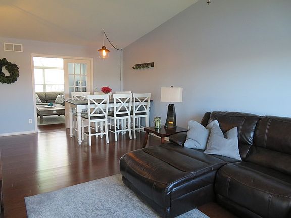 Easy Living!! This 3 bedroom "zerlot" home is ready for you to move into and enjoy. The open floor plan with a cathedral ceiling makes a great space for relaxing and watching your favorite shows, or a great place to entertain friends and family. The spacious kitchen has been updated with granite countertops, breakfast bar and lots of work space. It even opens up to the living area making it easy to get food to the table. The second bedroom can also be used as a flex room. There's ample space for you work desk and exercise equipment. The French door allow you to keep it a bit more private. Just off of the heated garage is a utility room with a little extra storage space. The master bedroom has a walk-in closet, wood floors and a view of the lake. What a great way to wake up for the day! The covered deck and patio are great places for entertaining, cooking on the grill and relaxing. This home is ready for it's new owner. maybe that will be you? Nest thermostat and Smoke detector stay plus a "Smart Garage Door Opener".