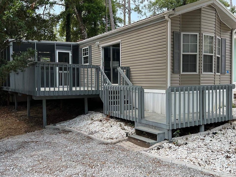 Beautifully updated coastal getaway nestled on a quiet lot with a large deck and screened porch. This two bedroom, one bath home is the perfect place to entertain friends and family. The second bedroom has a privacy divider and closet with desk and added storage. The outdoor living space is the ideal spot to sip sweet tea and watch the beautiful Alabama sunsets. Notable features include: New roof, New air conditioner, New flooring and it is all freshly painted. The designer did not miss a detail on this gorgeous home. The outdoor space allows for an abundance of parking including parking to accomodate a boat. This is your chance to own a cozy, coastal home with an open lot next door giving added open space and privacy. This property has very little yard maintenance. Located only minutes from the Lilian boat launch and 15 minutes from the sugar white beaches of the Gulf of Mexico. Owners enjoy membership with a lifestyle full of amenities and low POA Dues of only $74/mo (includes trash pick-up). There is something for everyone: key fob access to all facilities, 24-hour security, two clubhouses to host events and club meetings; year-round junior Olympic sized swimming pool with aquatic classes; pickleball courts, tennis courts (tennis club); basketball court, fitness facility, playground, public shower area, shuffleboard court, and nature trails. You can join the community-organized activities like Bingo, card and game nights, book clubs, garden club, and enjoy group travel opportunities. If you like to relax, you can spend the day at the Spanish Cove beach area or fishing from the 500-ft pier enjoying the famous Alabama sunsets, check out the neighborhood lending library with puzzles and movies, public showers and a laundry facility is on site for your convenience. Watch the sunset while taking a stroll around this lovely golf cart community. Come see your new home.