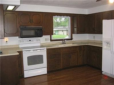 Move in condition with newer replacement windows, newer GFA, totally remodeled bath with tile walls, floor,tub/shower and new vanity with lighting, updated kitchen with newer sandstone counter, sink, refrigerator, smooth top stove, microwave and disposal. Hardwood floors under carpet in living room and all bedrooms. Newly poured concrete driveway too! Nice sun porch with fenced back yard and storage shed.