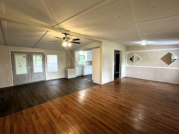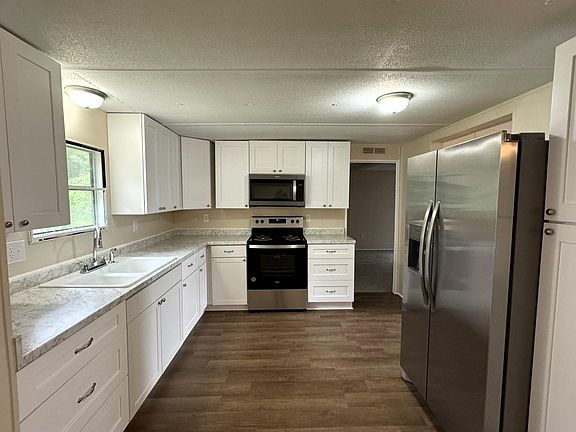 Remodeled mobile home in the county. 3bd/2ba, new paint, cabinets, flooring, appliances, etc. Front & Rear porches. 1 year lease is required with an approved zillow application. NO PETS.