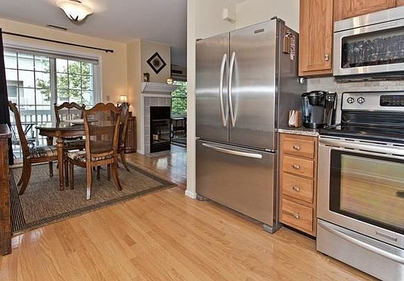 This fabulous corner unit has been updated and is ready to move right in! Large newer windows bring lots of light into this home. Open floor plan includes fireplaced living room, dining area with slider to renovated deck with Trex flooring and beautiful kitchen with granite counters, newer stainless appliances & new lighting. The large master bedroom has plenty of closet space plus a bonus space for cozy home office or additional closet. Half bath for guests on the main floor leaves the full bath next to master bedroom for your exclusive use. New carpeting on stairs & in master bedroom. Light, bright and recently painted. It's not only about beauty - comfort & energy efficiency are important too. Windows & doors have been replaced, garage has been insulated to help keep the living space comfortable, new heater in the entry way, hot water heater and more! Convenient location with easy access to all major routes. Come view this home to see all the features that make it so special.