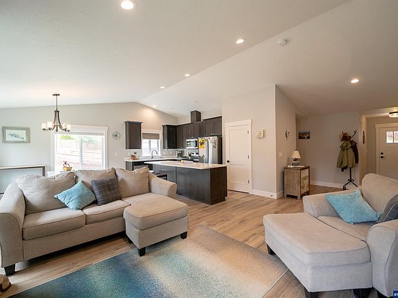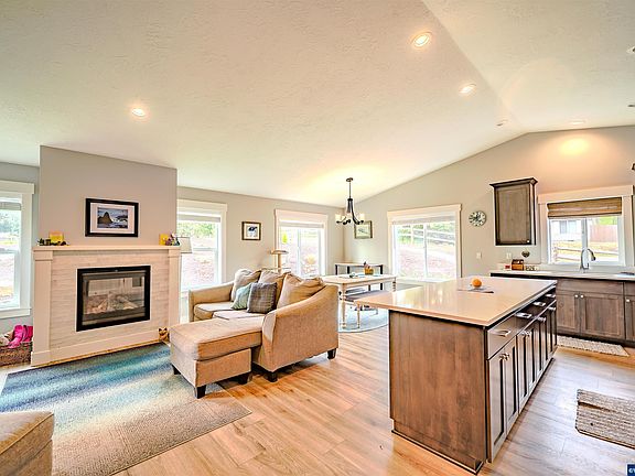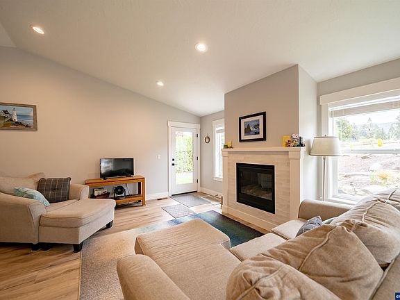 Better than Brand New built in 2022 on 0.5 Acres – Explore this 3-bed, 2-bath, 1630 sqft marvel with vaulted ceilings, LVP flooring, gas fireplace, and quartz countertops. Enjoy a chef's kitchen with S/S appliances, and a gigantic island. Plus, high-speed fiber internet. The custom landscaped backyard features a covered concrete patio, rock waterfall, and walking paths throughout. Fully fenced with U/G sprinklers. Perfect for both relaxation and entertaining or watching the longhorn cattle next door