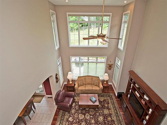 Wonderful open floor plan soaring ceilings, walls of windows and hardwood floor. Upgraded gourmet kitchen with unique granite and high end appliances. The kitchen opens to the great room and has an eating area. The first floor master has a wall of windows and vaulted ceiling. The master bath vanity is new with top of the line cabinetry, granite, fixtures, shower door and accessories. The master closet is a dream with a high end cherry closet system- no need for dressers. The large entry hall opens to the great room and the dining room. The great room has three stories of windows overlooking the rear yard. The study is private and is situated off the landing. The three bedrooms on the second floor are large with great closet space and a beautiful hall bath. The laundry is on the main floor with cabinetry and a granite countertop. The rear patio has a retractable awning and the yard is landscaped with native trees, plants, grasses and flowers. Must see this home