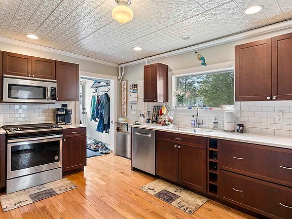 Charming in-town Petoskey home is ready for new owners. This classic beauty has a double-decker porch, large, fenced-in yard, year round sunset views and peaks of the bay, sprinkler system, and two-car garage. The beautiful wood floors steal the show as do the living room built-ins and stained glass window in the traditional dining room. The recently updated kitchen is spacious and features ample cherry cabinets, stainless steel appliances, quartz countertops, and classic subway tiled backsplash. The mudroom at the back entrance is a must for an active northern Michigan lifestyle. The home features 4 nicely sized bedrooms and 2 newly remodeled bathrooms. Everything about this house is well maintained and tastefully appointed.