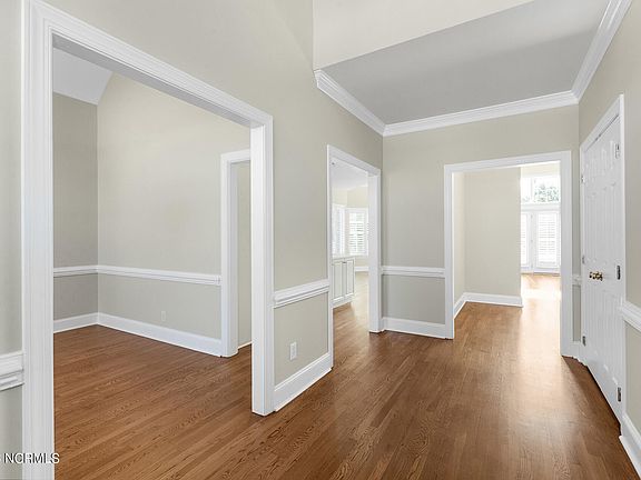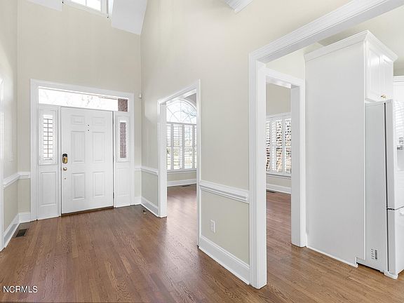 Elegance best defines this home in sought-after Landfall, Wilmington's premier gated community. The home's curb appeal is accentuated by a lush landscape, aggregate driveway, transitional architectural details, and palladium windows. The highlight of this stately residence is the private cul-de-sac location and stunning views of the pond and the Nicklaus Golf Course - Marsh 9.