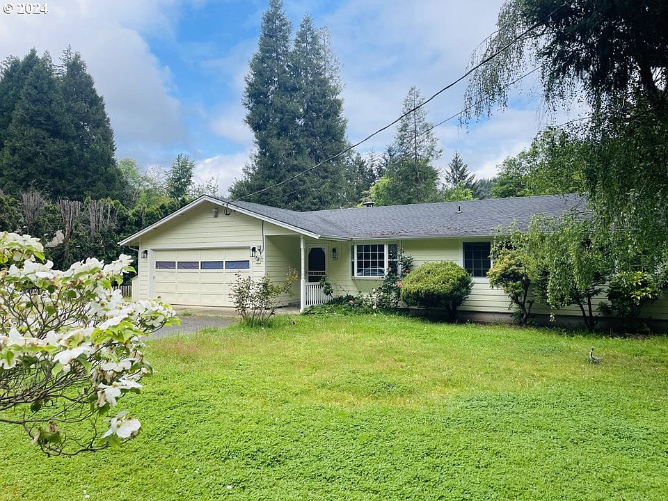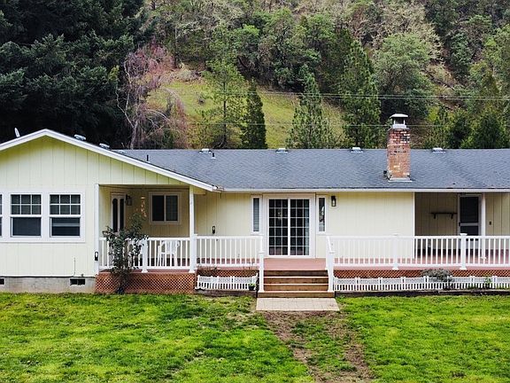 CANYON CREEK FRONTAGE - This wonderful 3/2 sits on .41 of an acre with creek running full length of the backyard. Several access points within the home lead to the incredible partial covered composite deck including french doors from the primary bedroom and a slider from the living room. Temperature Control should cover all seasons with the Wood Fireplace and Forced Heat and Air Conditioning. Over 1,300 square feet of living space with real wood floors and carpeted bedrooms. Kitchen features include tile counters with eating bar, stainless steel appliances, and a bay window. Primary Bedroom offers two closets including a walk in closet, deck access, lots of natural lighting from multiple windows, and primary bathroom that has another walk in closet. Large fenced backyard includes garden bed retaining walls, Covered Platform for relaxing or entertaining, Tuff Shed with electrical, skylight and insulated walls, and access beyond the fence to the creek. Plenty of room for parking including the double car garage. You won't want to miss all this home and property have to offer.