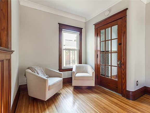 Full of character and charm, this home welcomes you with a spacious covered front porch—perfect for relaxing and watching the world go by. Inside, the formal dining room is complemented by a classic butler’s pantry, offering convenient service to both the kitchen and dining areas. The primary bedroom features a generous walk-in closet and its own enclosed porch for added privacy and comfort. Beautiful natural wood trim, leaded glass windows, a cozy gas fireplace, and pocket doors add to the home’s timeless appeal, while walk-in storage off the dining room offers extra functionality. An enclosed porch off the kitchen leads to a deck and fully fenced backyard, ideal for outdoor enjoyment. Offers will be considered after 4Pm Monday The 25th.