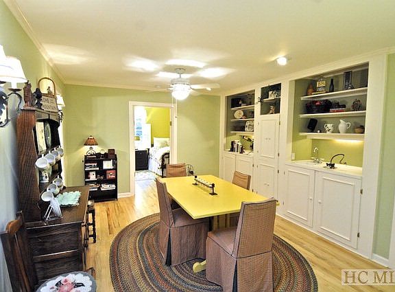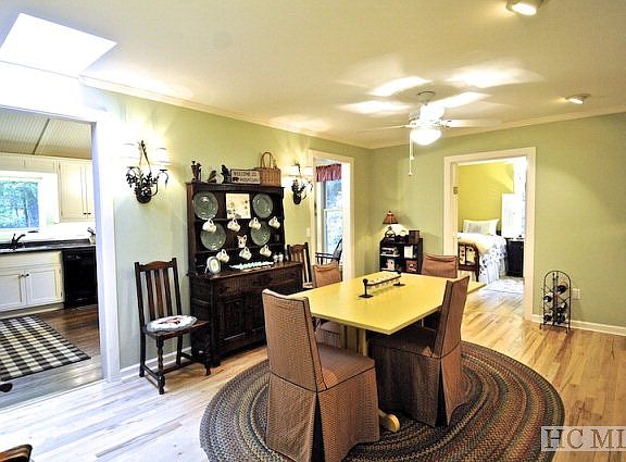 Talk about a charming cottage! White fence, one level home, terraced flower gardens with waterfall pond and a path to the stream! Built in an era of narrow hardwood floors, glass door knobs, and built in china cabinets but modernized with custom cabinets, lovely kitchen and baths-this is the perfect mountain get-a-way. Delight in the screened porch with a favorite book, nap on the sleeping porch or sit by the fire in the wonderful sunroom donned with a huge skylight. Experience a by-gone era in Highlands! A 2 car garage completes this pretty picturesque home. Three bedrooms and 3 fireplaces, one in the bedroom and one in the kitchen, add to the ambiance. Sun on the stone terrace or enjoy the peace of a screened porch with mountain breezes. This is the quiet area of Mirror Lake -enjoy canoeing or feeding the ducks daily. Currier and Ives home in the winter's gentle snow. Great value, home and location. Only 5 minutes from downtown Highlands! See today!