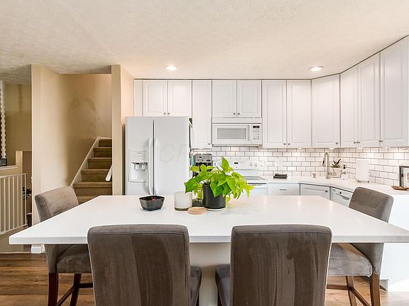 Seller installing NEW HVAC system NOW. Perfect Large 3 bedroom home next door to Gahanna's newest city park, Sunpoint Park has wide open spaces, playground, and sports courts. New open kitchen with white cabinets, quartz countertops, new appliances, and great looking durable flooring. Perfect sunroom addition overlooking large paver patio and fenced yard. Family room with wood burning fireplace adds the extra living space for enjoying home life. All bedrooms are large and bright, full main bath with recent remodel, newer carpeting, replacement windows, Master BR with barn door access to bath. Huge 2 car garage with massive walk up area for storage, a large fenced yard with paver patio, newer roof. The home has all new paint and look s fantastic. Ready to move into.