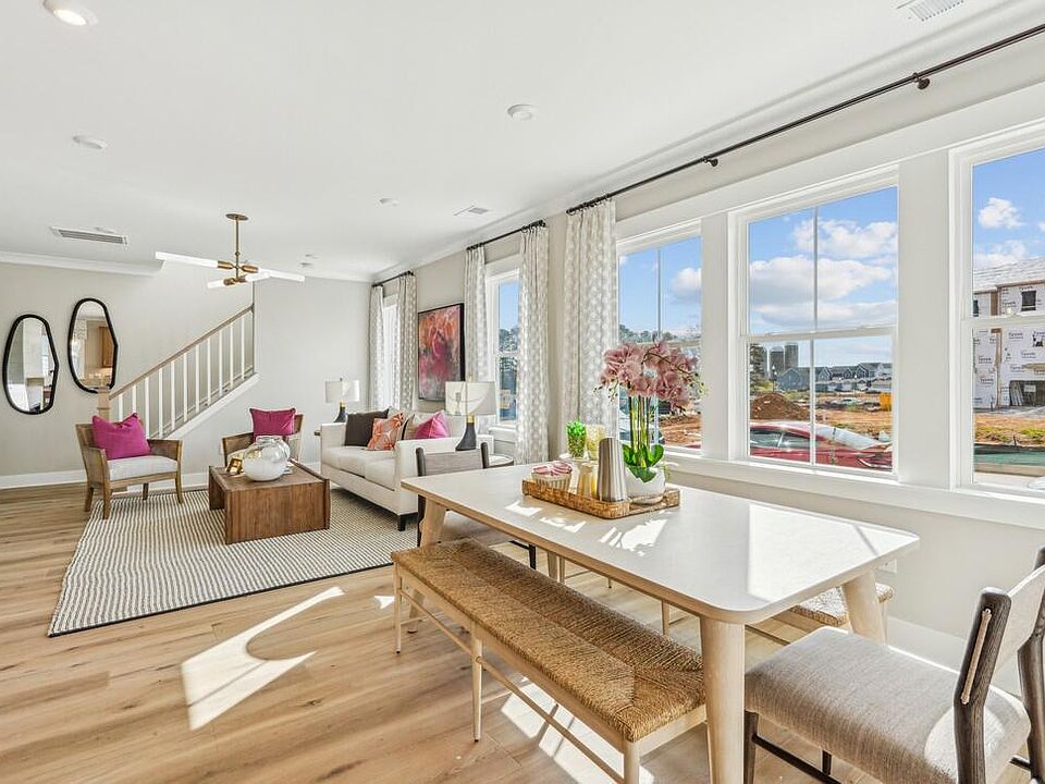READY Jan 30th. End Unit. The WILSON is a spacious 3 BR/2.5 Bath townhome with attached 2 car garage. Open floor plan with kitchen, dining & family room on the first floor. The kitchen includes a large island, pantry, pendent lights, white cabinets & quartz counters. EVP throughout the first floor. Oak tread staircase leads upstairs to a loft. Nice space for additional entertaining area or home office. The second floor also includes the primary suite with tiled shower and large walk in closet. Plus, Two additional bedrooms, full bathroom, and laundry room. Dropzone at garage entry. 9ft ceilings on all floors. Other features include: tankless gas water heater, Ring doorbell, Schlage Front Door Lock, electric car charging outlet, whole house surge protector. The community features a 15 acre lake, pool, parks, and trails! A brand new clubhouse and park are starting construction now! *pictures are previously built model home and do not represent the same colors/selections.