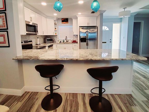 This is a perfect jewel of a condo, located in the highly sought-after and rarely available Belleair Palms Terrace. Located in the heart of Belleair Bluffs this unit is close to it all: shopping, fine dining, and only 1.5 miles away from beautiful Florida beaches. Sleek, newly remodeled, furnished, gorgeous granite countertops, tile backsplash, tile flooring, and stainless steel appliances will not disappoint! All new lighting, fixtures, doors, and crown molding. This spacious 1215 sq. ft. 3 bedrooms, 2 baths condo has a Florida room and a patio, along with 2 assigned parking spaces. There is a small private laundry room off the charming patio. Take advantage of this great unit! Renter is responsible for electricity and the Internet. First and last month's rent due at signing. Will run background check. No smoking, no pets allowed.