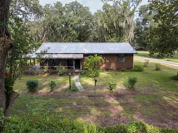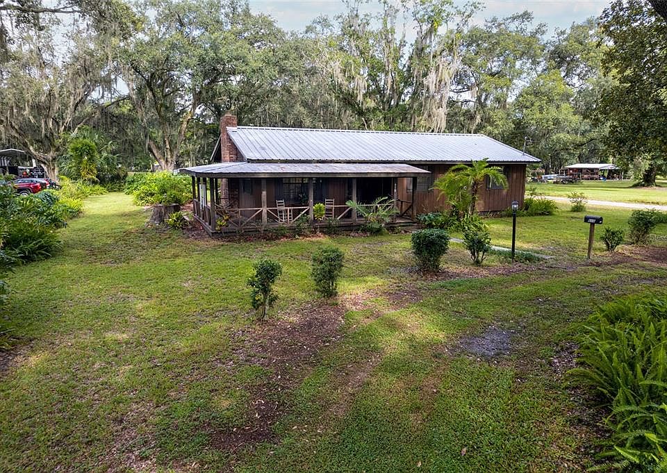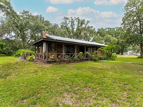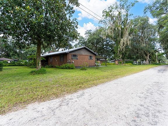 A whole lot of Country! If you need a little room, then this Country Style Home is for you! Featuring 3BR/2Baths on 1 Acre of property, No HOA or CDD Fees. Walking up to your front door, you will notice the nice wide front porch to sit and enjoy your morning coffee while enjoying your beautiful front yard with large shaded oak trees. Walking inside, you will find a nice open living area with a large Living Room and a Wood Burning Fireplace overlooking your nice size Dining Room. The Kitchen is an "L" shape and features a closet pantry as well as a bar area. Down the hallway, you will find your Guest Bathroom which has been updated, two Guest Bedrooms which are nice size rooms and your Master Bedroom and Bath which features a step in Shower and a separate vanity area. This Country Charmer also has a Laundry Area with plenty of room to use as a sitting area or storage area. Walking out back, you will notice you have a one car carport attached to the Home as well as two additional Carports/Storage Buildings to park your Boat, Mowers, ATV's or anything you wish! The Hot Water Heater was replaced in 2018, A/C in 2019, and new Septic and Drain Field October 2022. Don't wait on this one as it will not last long in this area and price range.