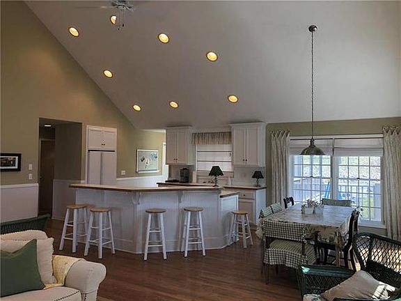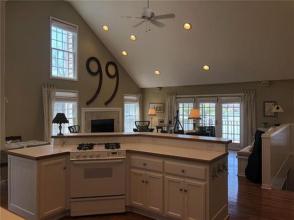 This lake home is a breath of fresh air in design and comfort. Wrap around deck, Open floor plan, 2 wood burning f.p. wood and tile flooring, white kitchen cabinets, island w/ gas range, all appliances included. Cozy living area w/ f.p, walkout to lakeside deck, custom built sofa area, Master w/ walk out & bath, Guest w/ bath, Lower level has fam. rm. w/ f.p, guest w/ bath , both with walk out to lakeside deck, Large storage area, Covered boat dock w/ lift, 1 jet ski ports, lakeside patio, 2 car attached gar.